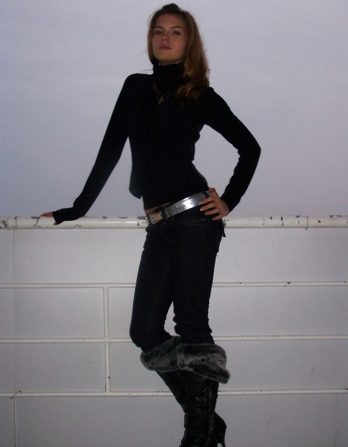 1ra. Pose: la POSE DE VIGILAR: Nuestra modelo ahora mira a todos los lados, vigilando que todo esté en orden, que nadie cometa un delito, vigila el orden.
